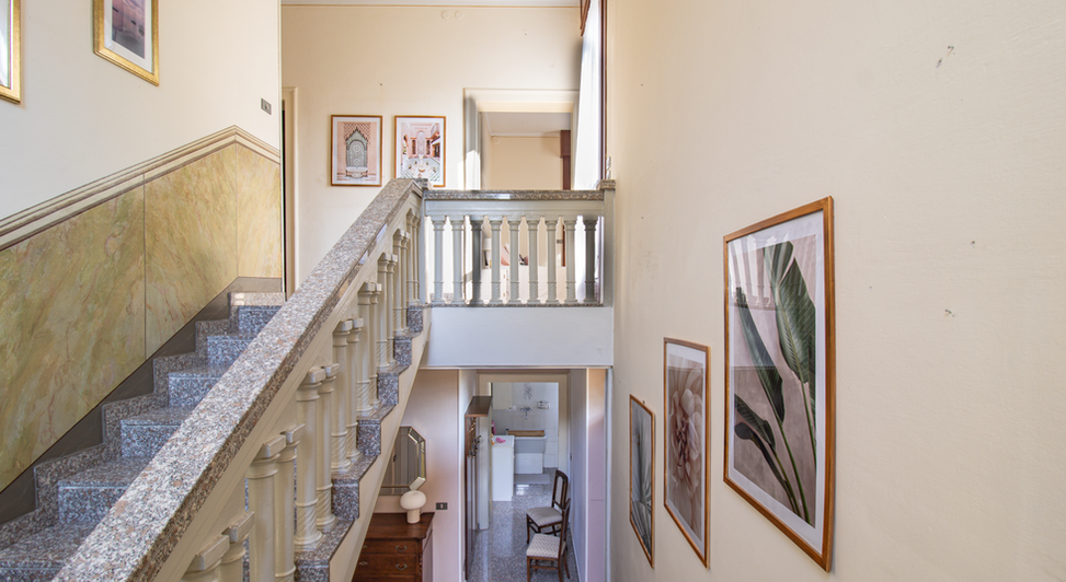 L'idea di stile per "La Demeure Verdiana" si basa su un'elegante reinterpretazione del classico liberty, valorizzando i colori distintivi esistenti (rosa antico, verde salvia) con tocchi raffinati. L'arredamento combinerà mobili in legno scuro dal fascino intramontabile con elementi tessili ricchi e dettagli in ottone o dorati, creando un'atmosfera accogliente e sofisticata.